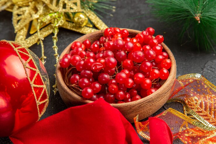 Они также обладают нежным, едва уловимым ароматом. Отличительной чертой сорта является его мелкий размер ягод, сохраняющихся на ветвях на протяжении всего года. Заметно, что ближе к Рождеству, из года в год, ягодки приобретают наиболее насыщенный оттенок. Листья вариегатного сорта характеризуются наличием белых разводов.
