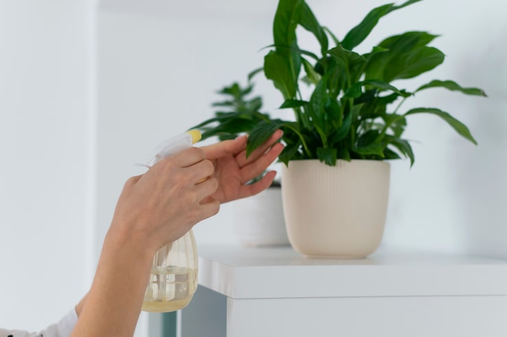 Шефлере, как и другим растениям, характерным для тропического климата, необходима высокая влажность воздуха. Для поддержания оптимальных условий рекомендуется регулярно опрыскивать ее теплой водой из пульверизатора несколько раз в день. Также можно разместить рядом с горшком емкость с водой.