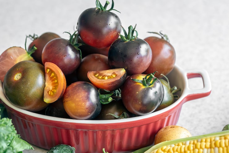 Насыщенный темный оттенок плодов помидоров обусловлен антоцианами – растительными пигментами, которые обладают антиоксидантными свойствами. Включение черных помидоров в рацион может положительно сказаться на состоянии кожи, поддержать здоровье сердца и сосудов, а также укрепить защитные силы организма.