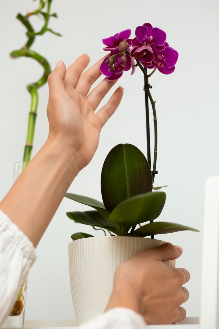 - Поместите растение в новый горшочек.